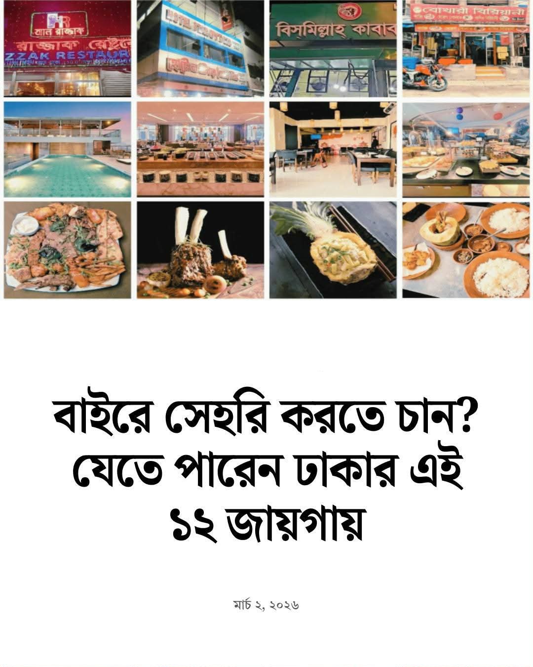 বসায় সেহরি না বাহিরে করতে চান? যেতে পারেন ঢাকার এই ১২ জায়গায় নিষিদ্ধ বা স্থগিত ঘোষিত সংগঠনের এমন নেতৃবৃন্দ ও কর্মীরা, যারা জামিনে বেরিয়ে সংগঠনকে পুনর্গঠিত বা মাঠপর্যায়ে সক্রিয় করতে সক্ষম—তাদের জামিনের পরপরই অন্য মামলায় ‘শোন অ্যারেস্ট’ দেখাতে হবে এজলাসে ভাঙচুর, বরিশাল জেলা আইনজীবী সমিতির সভাপতি আটক। পদত্যাগ করলেন হাইকোর্ট বিভাগের বিচারপতি নাইমা হায়দার.। আজ প্রপোজ ডে, প্রিয়জনকে মনের কথা জানানোর দিন। সোমবার ফুলকোর্ট সভা ডেকেছেন প্রধান বিচারপতি। জাতীয় সংসদ নির্বাচন ও গণভোট নির্বাচনে যান চলাচল নিয়ে নতুন নির্দেশনা জারি করে প্রজ্ঞাপন দেশের সব শিক্ষা প্রতিষ্ঠান টানা ৫ দিনের ছুটি ভারতীয় ভিসার অ্যাপয়েন্টমেন্ট ব্যবস্থায় পরিবর্তন রমজানে অফিস সময় নির্ধারণ।